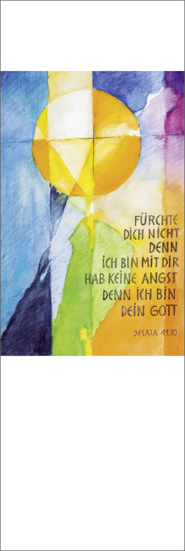 Der bekannte Maler Andreas Felger spiegelt in seinem Bild zur Jahreslosung diese Hoffnungskraft: Über den Abgründen des Lebens erhebt sich ein sonnengelber Kreis, der in sich das Kreuzeszeichen trägt.